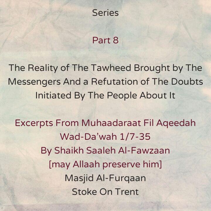 [And likewise, polytheistic practices and beliefs have become rife in the Ummah] due to the spread of Shubhah [i.e. doubts that are made to resemble the truth but are falsehood in reality] and stories that have misguided the majority of the people. And among these [Shubhah- doubts made to resemble the truth but are falsehood in reality] is what the people of Shirk of the past and those within this Ummah at present utilise as proof – that they follow the path of their fathers and ancestors, and that they inherited this creed [i.e. polytheistic beliefs and practices] from them, just as Allaah [The Most High] said: Az-Zukhruf Ayah 23]
