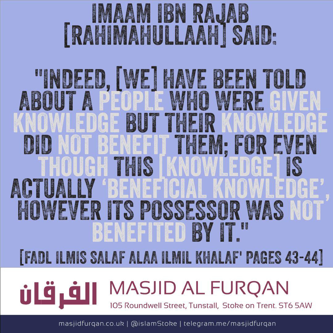 Indeed, [we] have been told about a people who were given knowledge but their knowledge did not benefit them; for even though this [knowledge] is actually ‘Beneficial Knowledge’, however its possessor was not benefited by it. Allaah [The Most High] said: